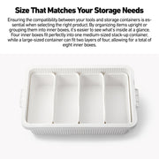 - Inner Boxes Compatible: Organize smaller items easily with inner boxes that fit perfectly inside the containers, or use them on their own.