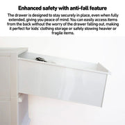 • Anti-Fall Safety Feature: Drawers stay securely in place, even when fully extended, providing peace of mind.