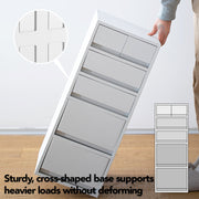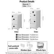 Maximize your space with our movable drawer cabinet, available in 4-tiered or 5-tiered options. Ideal for organizing A4 documents and other essentials, this cabinet fits perfectly under desks, beside beds, or in narrow spaces. The durable PP material and sleek white design make it suitable for any room, including bathrooms. Add mobility with the included swivel wheels.