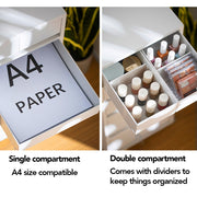• Tiered compartments: Spacious drawers, including A4 size compatible drawers with dividers.
