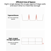 • Efficient Use of Space: Right-angle design fits snugly against fridge walls to maximise storage